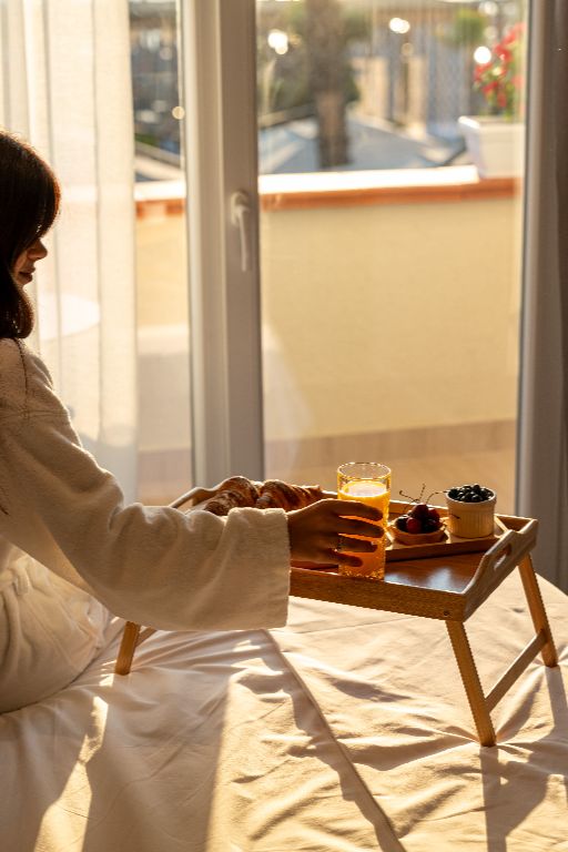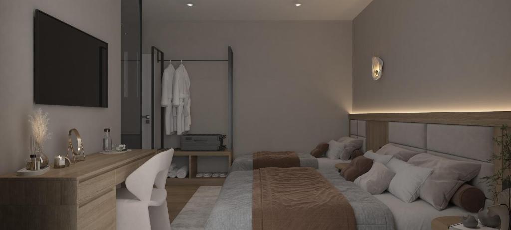 This air-conditioned quadruple room includes a flat-screen TV with satellite channels, a private bathroom as well as a balcony with garden views. 1 single bed and 1 double bed.